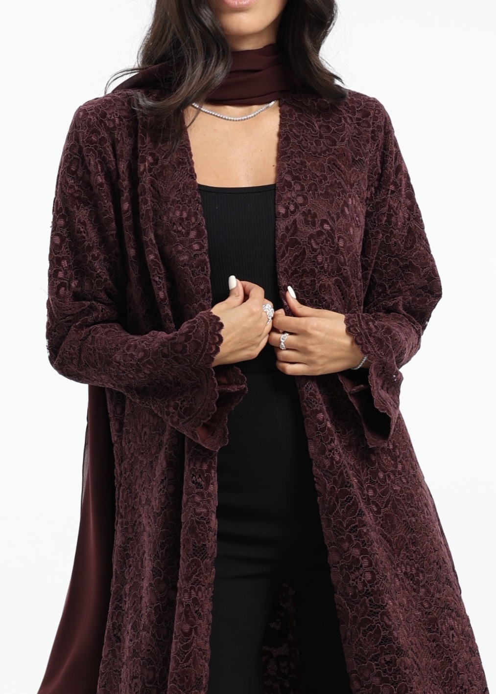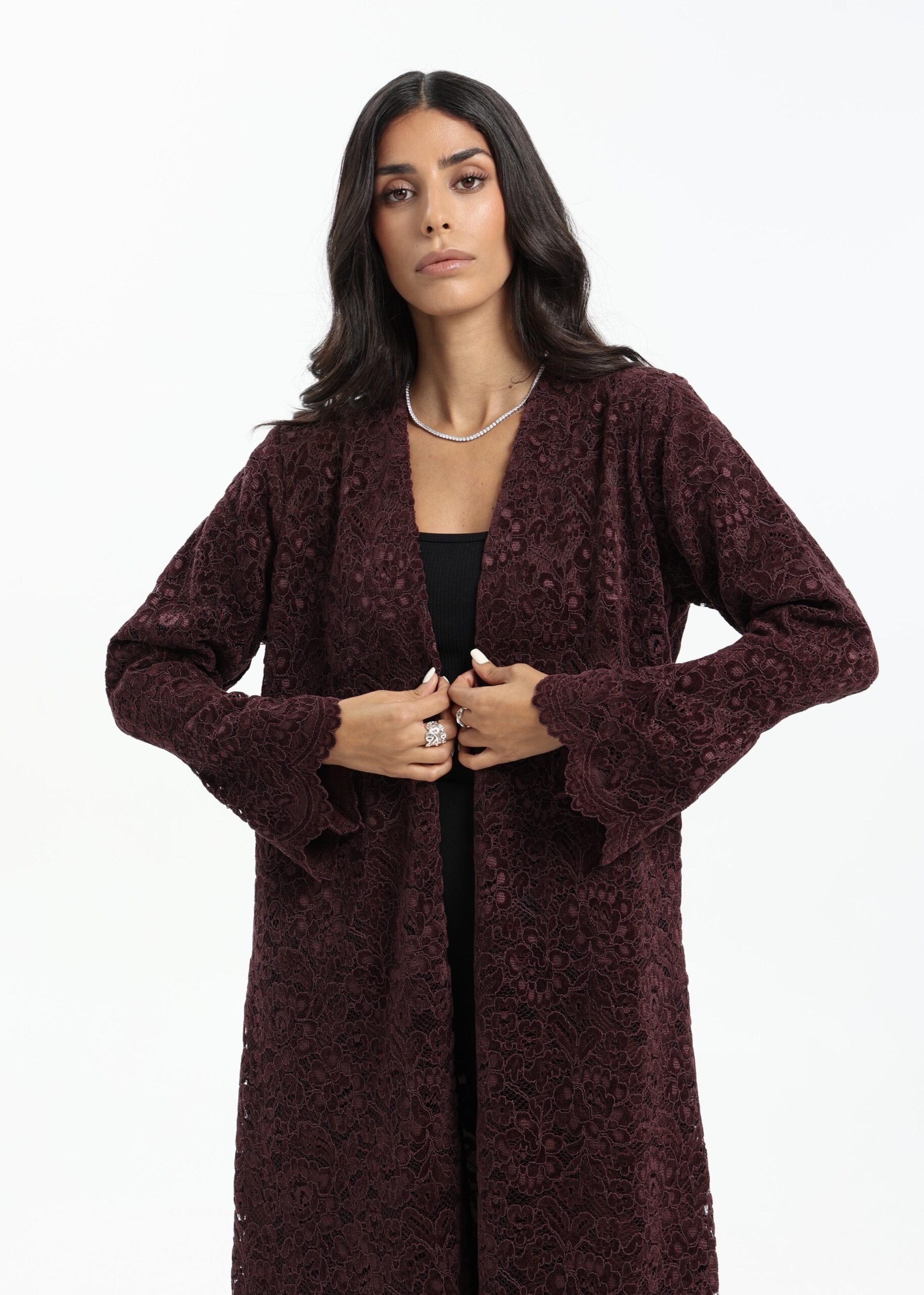 Skip to contentA velvet lace masterpiece with soft structure and fluid movement, perfect for elegant day outings & events.